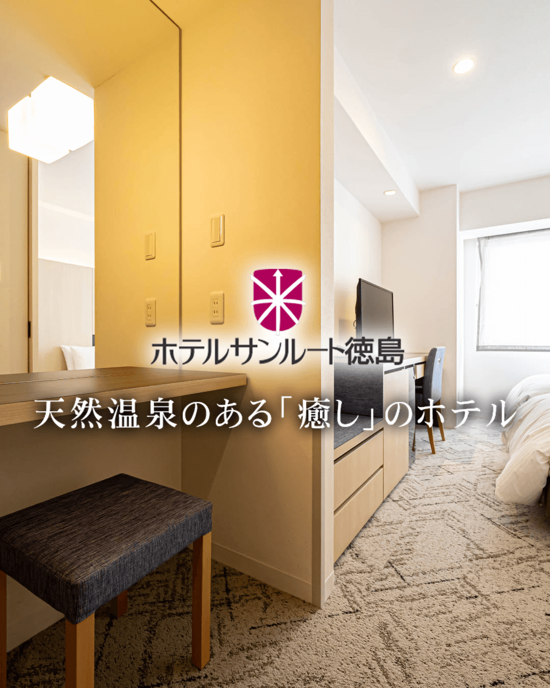また、NETFLIXやYouTube対応のスマートテレビ、サータ社のマットレスなどリラックスいただけるアイテムを取り揃えております。